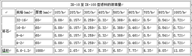 濾層厚度:1.0-1.2m; 進口壓力≧0.06Mpa; 設(shè)備承受壓力:0.06-0.3Mpa、0.3-0.6Mpa、0.6-1.0Mpa。
