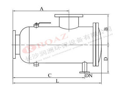 型號 | L(mm) | A(mm) | B(mm) | C(mm) | D(mm) | 排污口DN | 流量(T/h) |