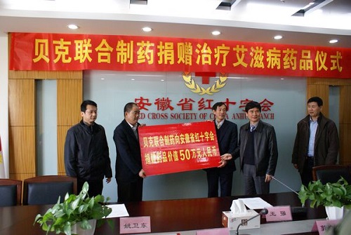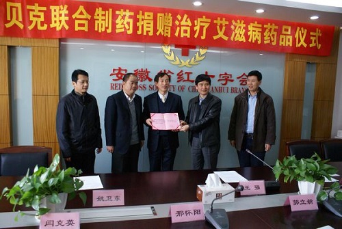 貝克聯(lián)合制藥向安徽省紅十字會(huì)捐贈(zèng)治療艾滋病藥品