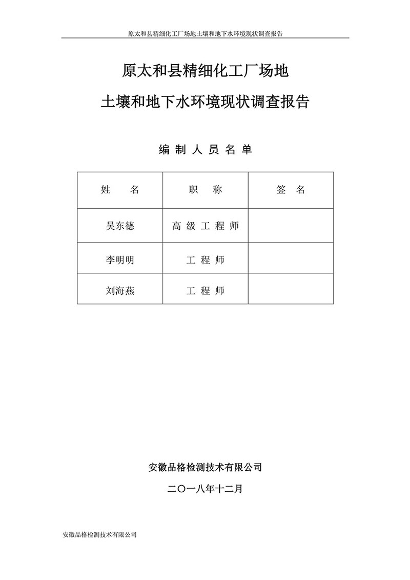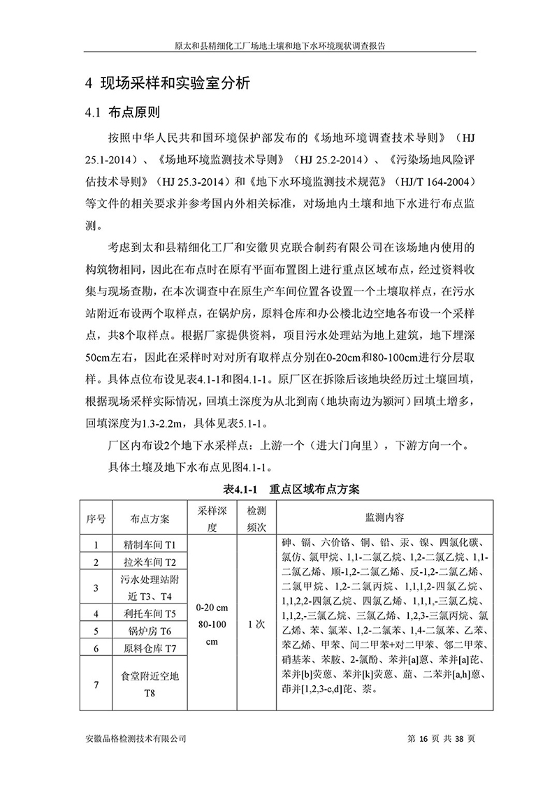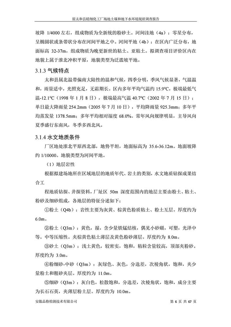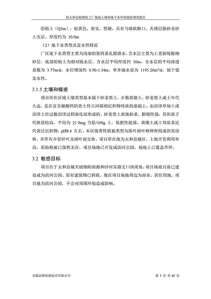 原太和縣精細(xì)化工廠 場地土壤和地下水環(huán)境現(xiàn)狀調(diào)查報(bào)告
