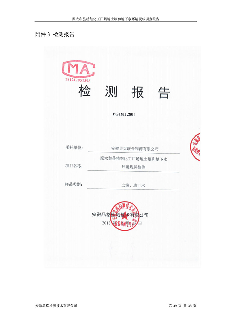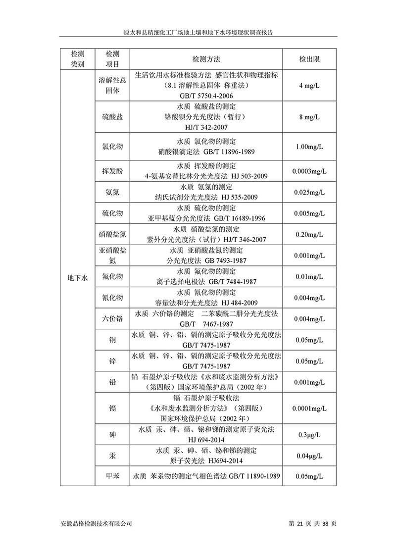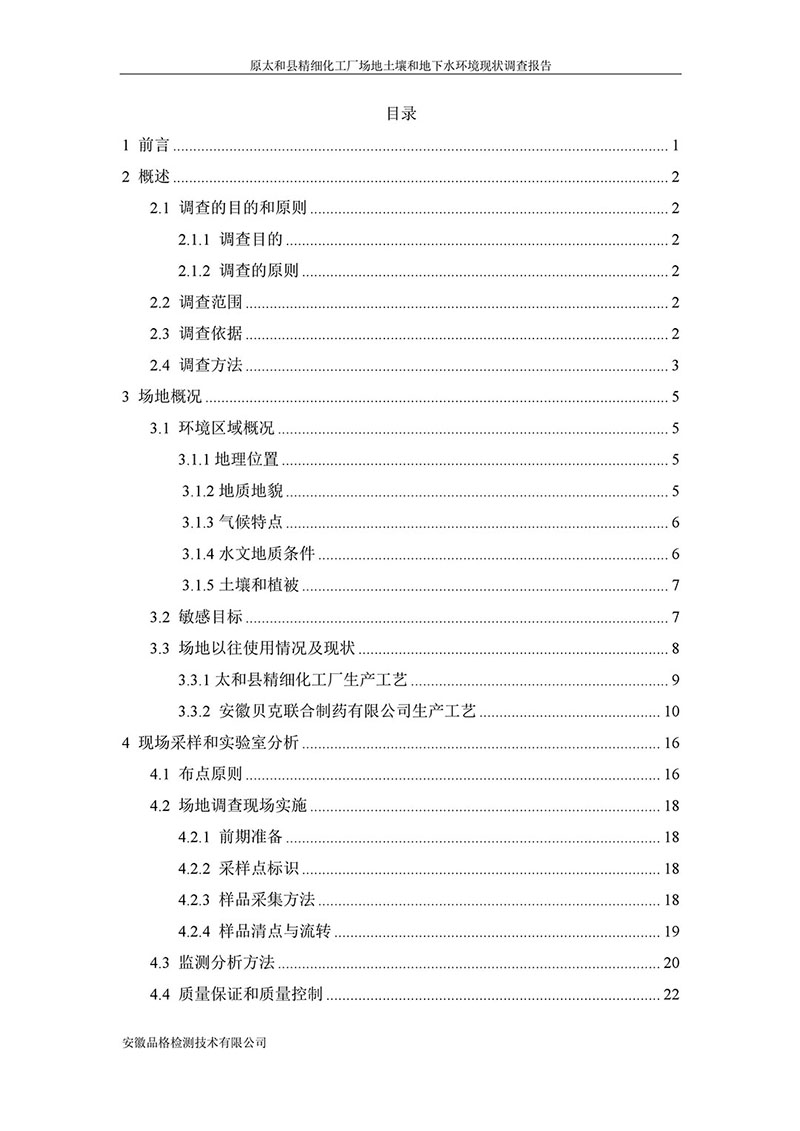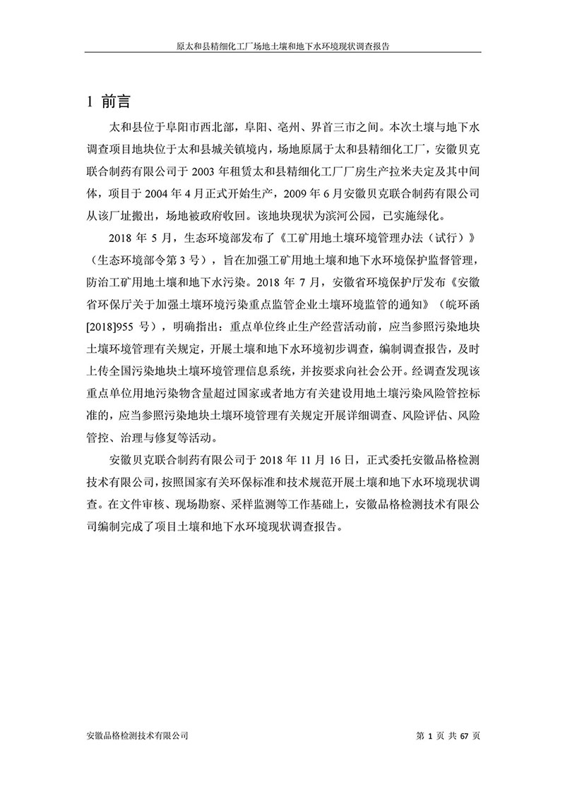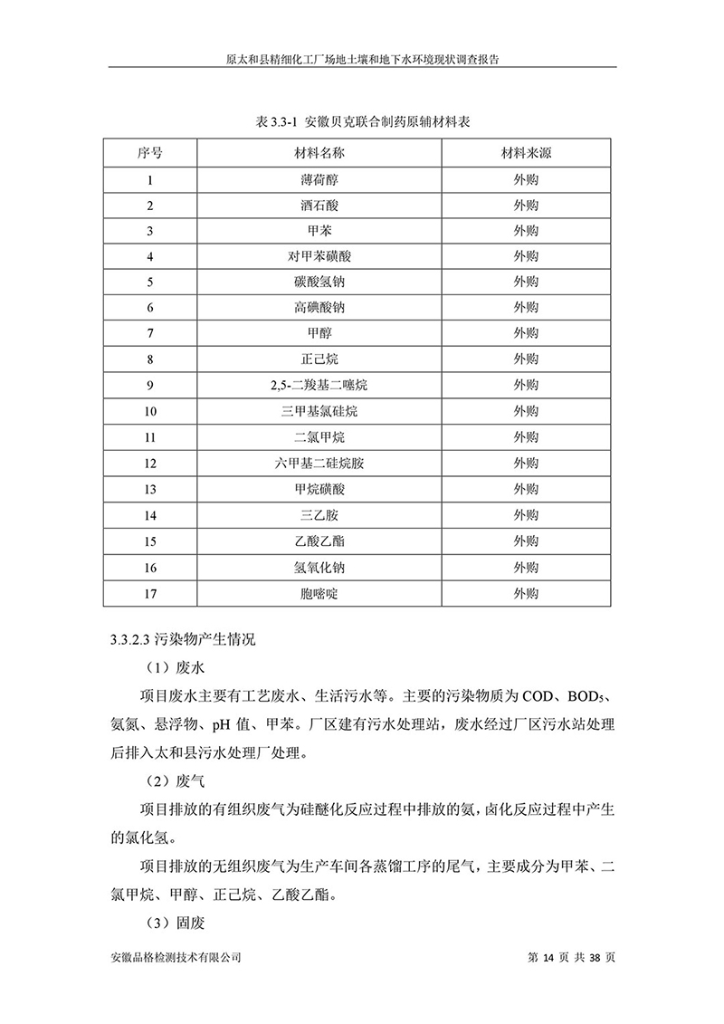 原太和縣精細(xì)化工廠 場地土壤和地下水環(huán)境現(xiàn)狀調(diào)查報(bào)告
