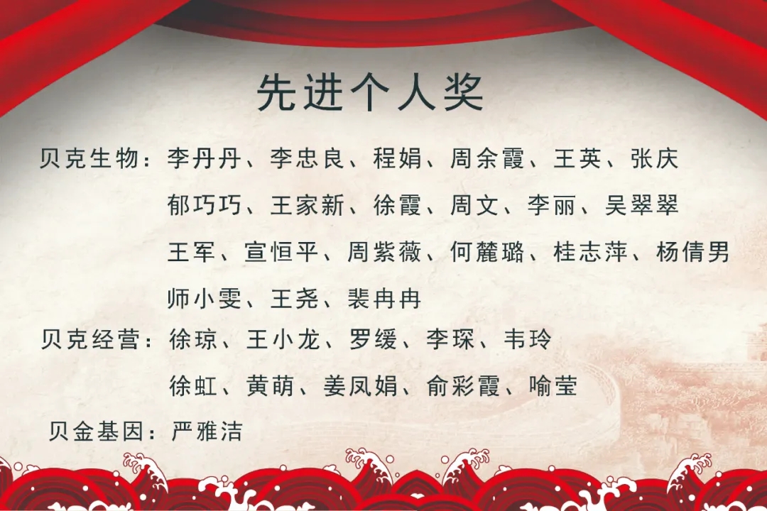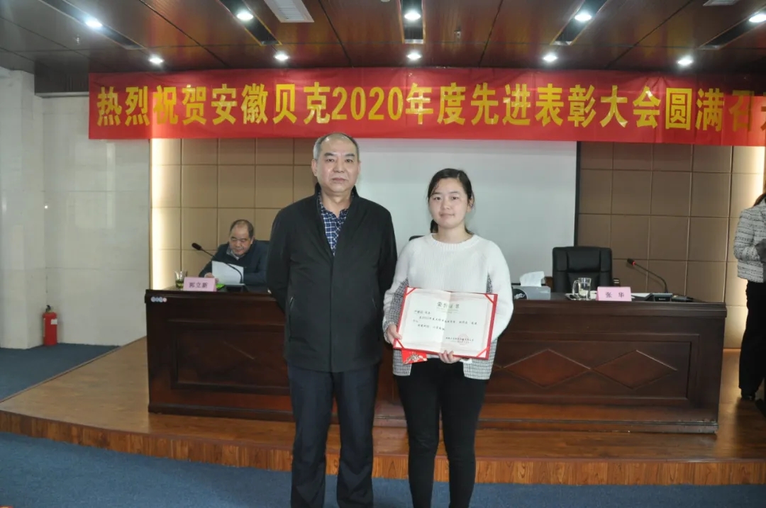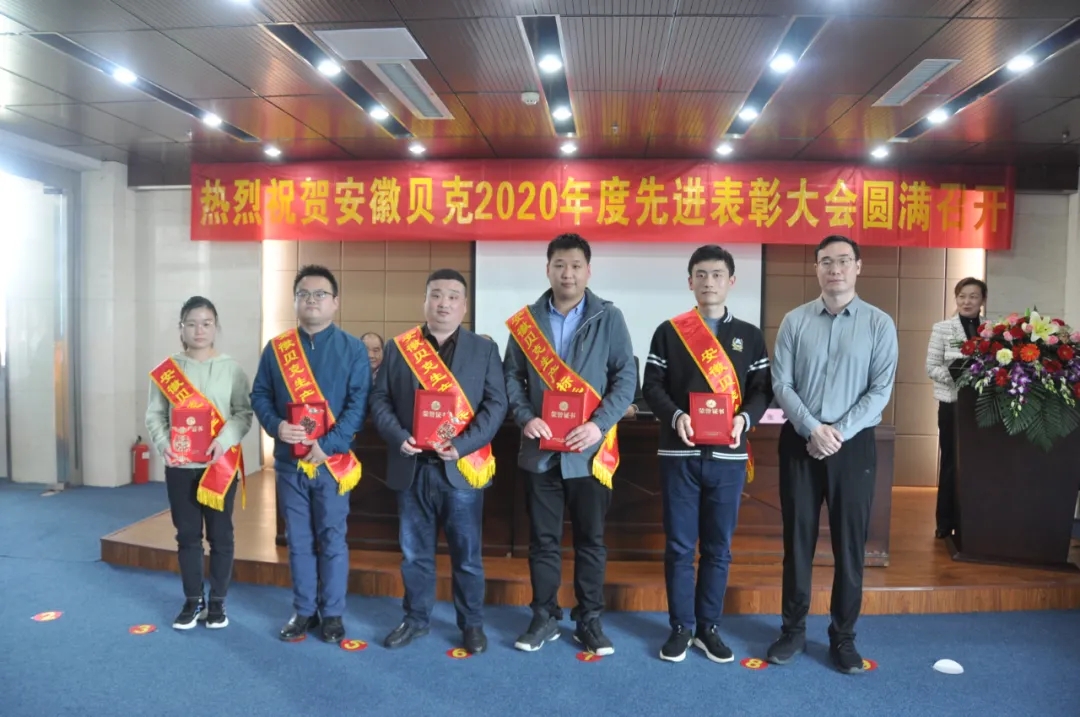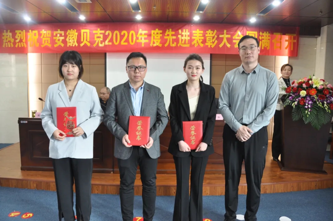 本次經過嚴格的推選流程,公司決定授予程娟等33人“先進個人”稱號,吳存等5人“生產標兵”稱號,質量檢驗部等7部門“先進集體”稱號,貝克研發(fā)中心等4部門“團隊精英獎”和宣傳特別獎,并現場頒發(fā)總額176.25萬元先進團隊、個人獎金。