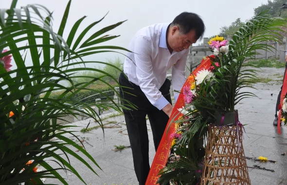 王志邦董事長、許俊副行長上前敬獻花籃、整理挽聯(lián)以表對革命烈士的哀思。